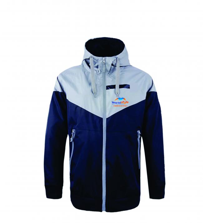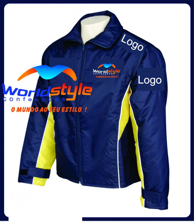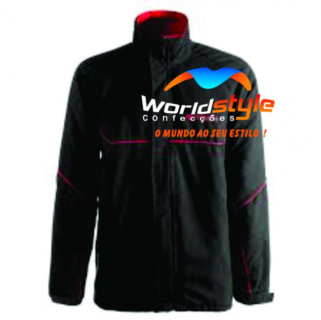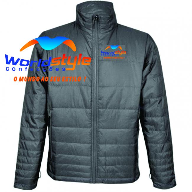 Jaqueta de naylon paraqueda resinada, com forro matelado e bordados