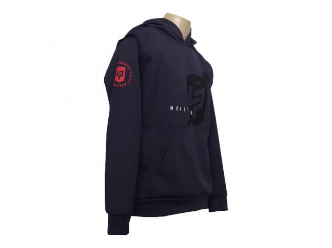 Moletom em Silk, capuz e bolso.